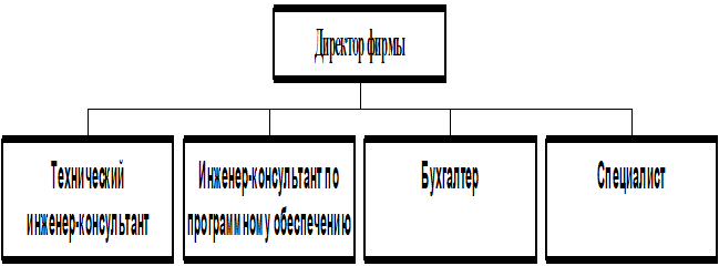 Директор - осуществляет общий контроль и оперативное руководство деятельностью компании, работа с клиентами, прием заказов, консультации пользователей относительно ПО и оргтехники (по телефону), в случае необходимости: сборка компьютеров и оргтехники, работа непосредственно у клиента.