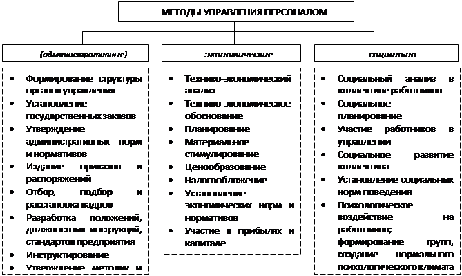 Методы управления – способы осуществления управленческих действий на персонал для достижения целей управления производством. Существуют 3 метода управления, которые отличаются различными способами воздействия на людей: