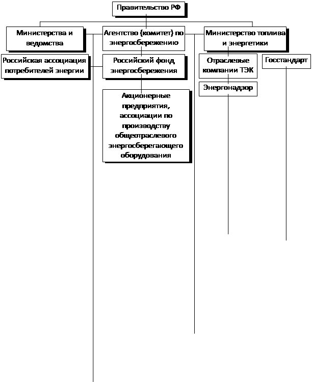 Органы Госэнергонадзора в приведенной структуре осуществляют государственную инспекцию по контролю за эффективным использованием нефти и нефтепродуктов, топлива, газа, энергетической и тепловой энергии, за соблюдением государственных стандартов в области производства и потребления энергии.
