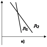 в) Д1 – относительно неэластичный спрос; Д2 – относительно эластичный спрос