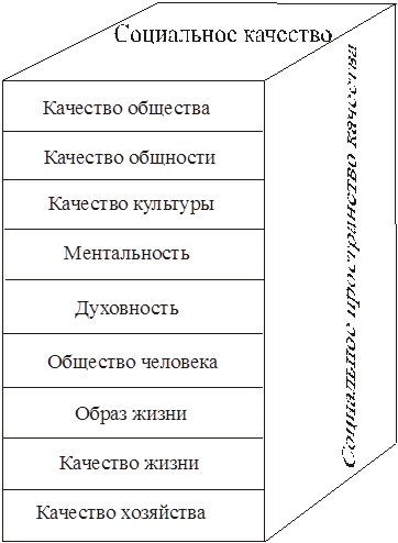 Методологическое значение категории социальное качество заключается не только в том, что она позволяет определить границы и природу социального, но и выявить системно-структурные его характеристики, рассмотреть качество общности, ментальности и т.п.