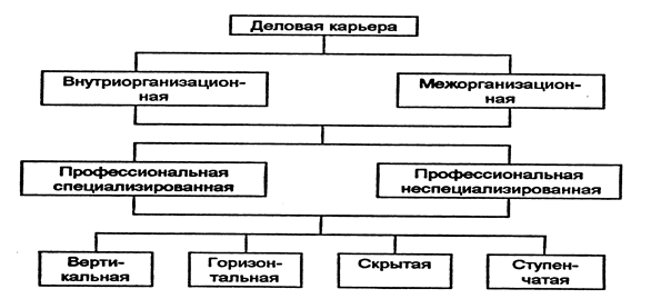 Карьера внутриорганизационная — означает, что конкретный работник в процессе своей профессиональной деятельности проходит все стадии развития: обучение, поступление на работу, профессиональный рост, поддержку и развитие индивидуальных профессиональных способностей, уход на пенсию. Эти стадии конкретный работник проходит последовательно в стенах одной организации. Эта карьера может быть специализированной и неспециализированной.