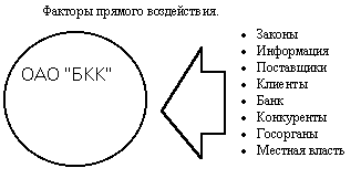 Оценим основные внешние факторы применительно к ОАО «БКК»: